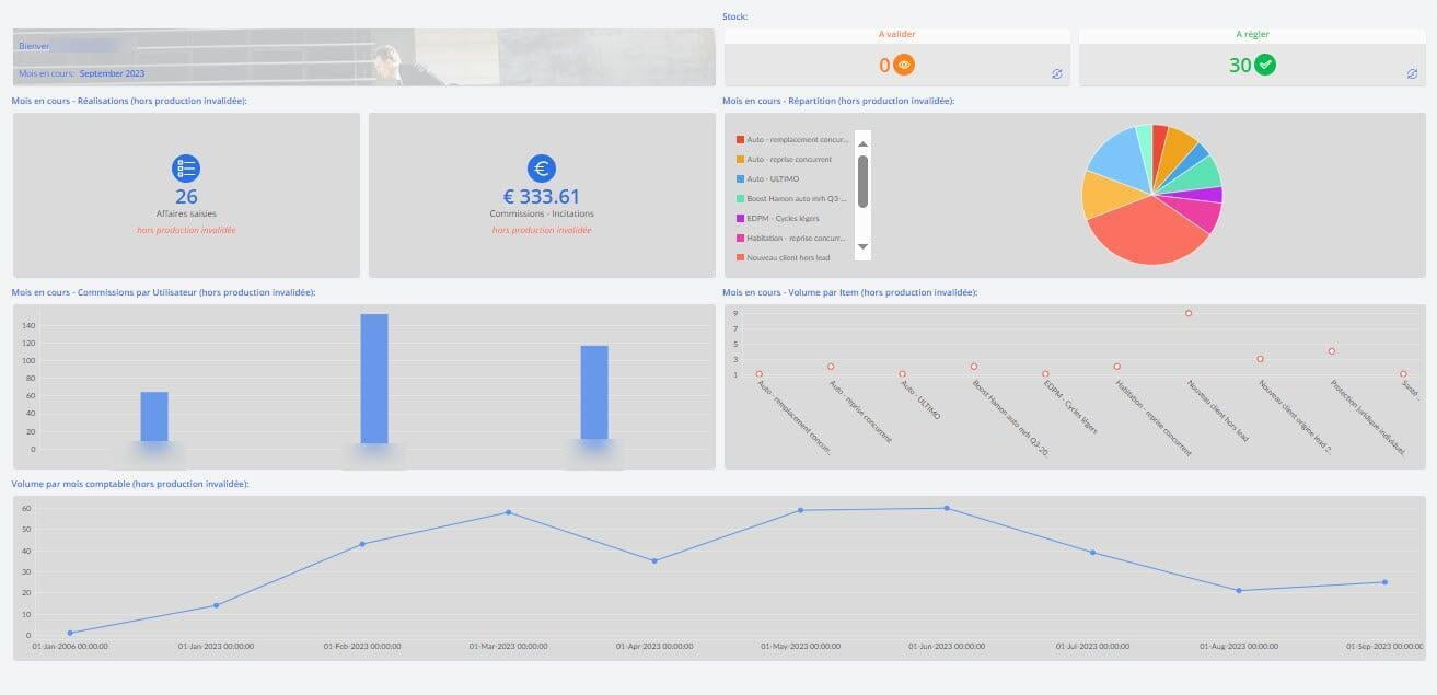 Dès l'accès au dashboard, vous avez une visibilité sur la production du mois en cours...